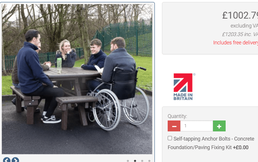 - 19.4 Print View - Pembridge™ Picnic Table with Wheelchair Access - Free Delivery - Glasdon UK